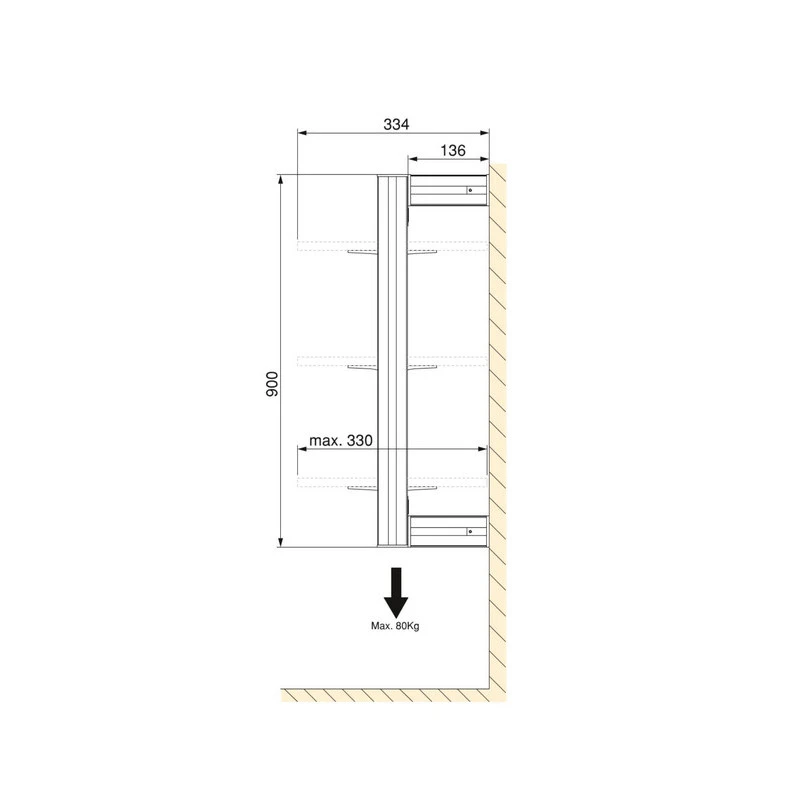 - Pour les étagères en bois d’une profondeur de 330 mm et d’une hauteur maximale de la structure de 900 mm.