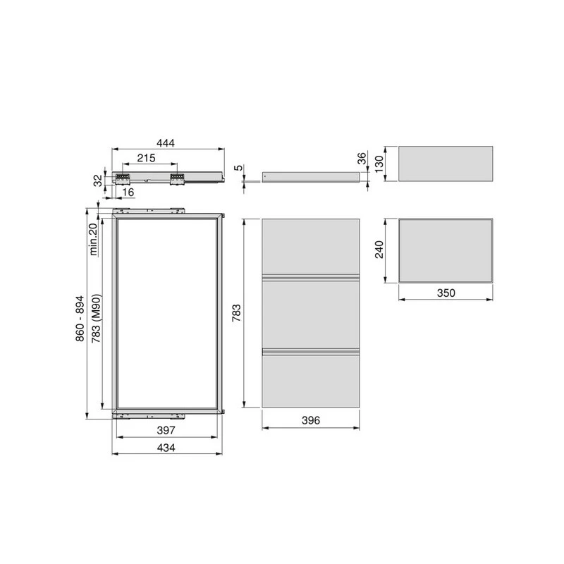 - Convient aux largeurs internes d’armoires de 860 mm à 894 mm (M90). Profondeur minimale de l’armoire 450 mm. Chacune de ses glissières peut être réglée jusqu’à 17 mm.