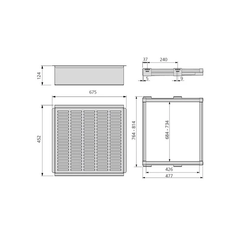 - Le Kit se compose d’un tiroir métallique de largeur 675mm et d’un cadre coulissant réglable en largeur.