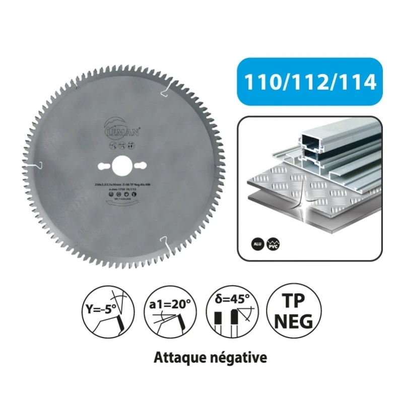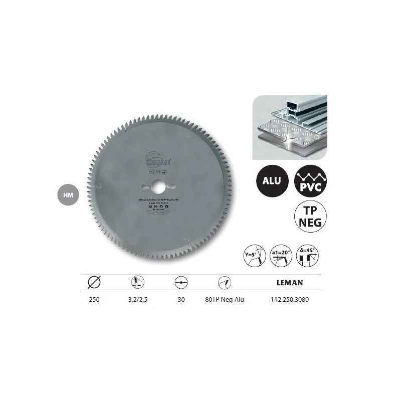 Leman – Lame carbure pour métaux non-ferreux 250x30x80 TP Neg Alu – 112.250.3080
