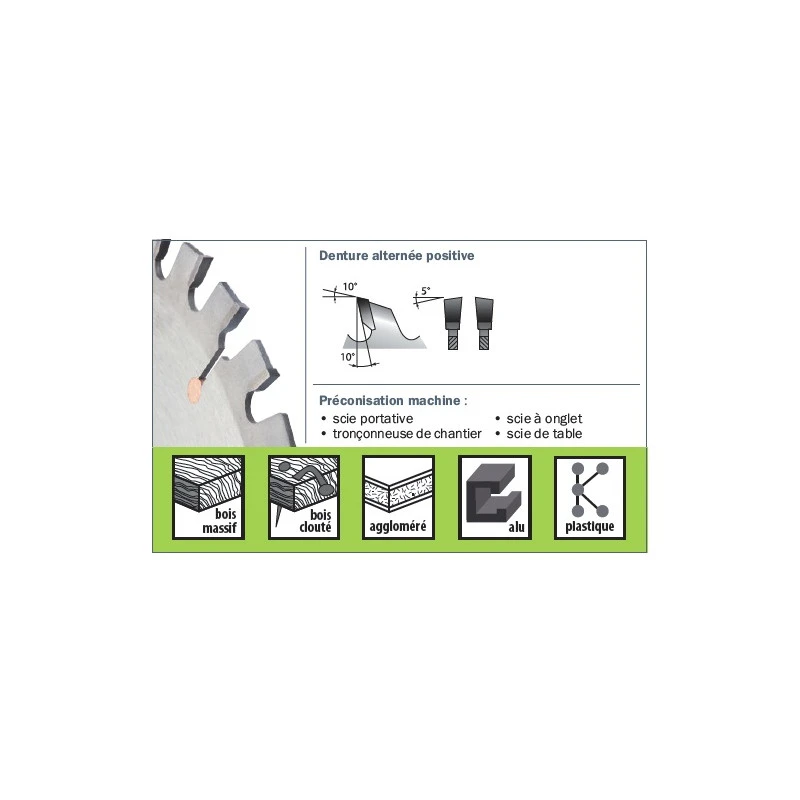 •Lame carbure pour une coupe rapide sur chantier, grande longévité