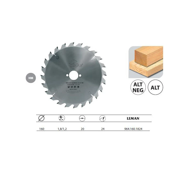 Leman – Lame carbure pour machines portatives Mafell 160x20x24z Alt – 964.160.1824