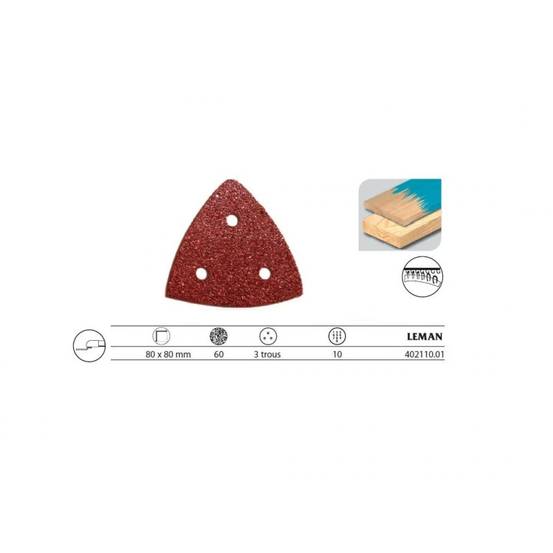 Leman – Lot de 10 patins triangulaires Velcro 80×80 mm GR 60 Corindon – 402110.01