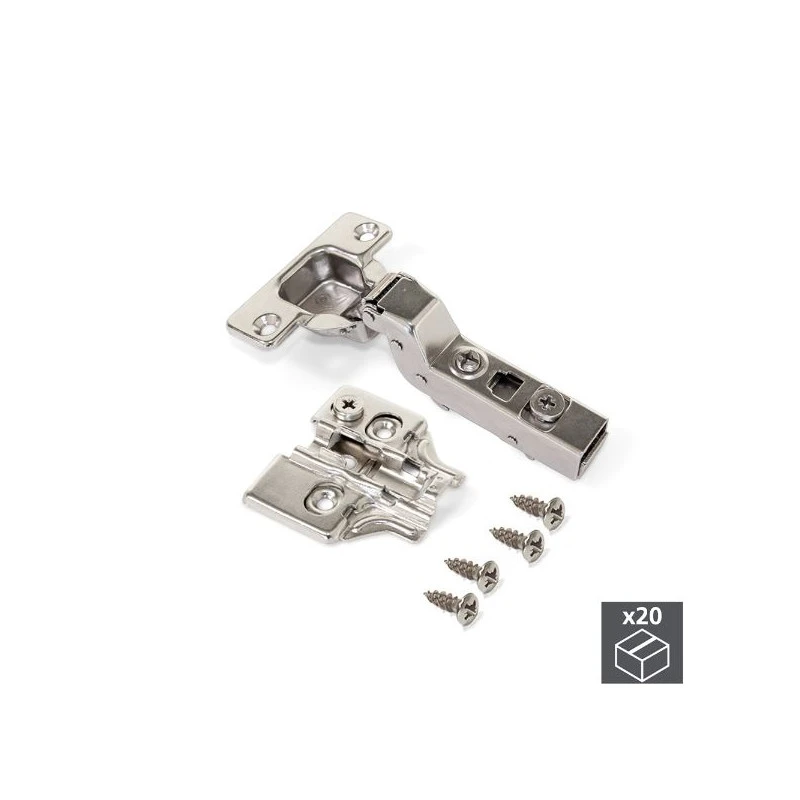 Emuca – Lot de 20 charnières pour montage rentrant, 20 embases ,vis pour montage