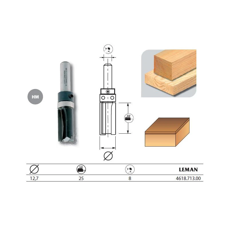 Leman – Mèche d’affleureuse droite diam. 12,7 l.u 25 q.8 + guide supérieur – 4618.713.00