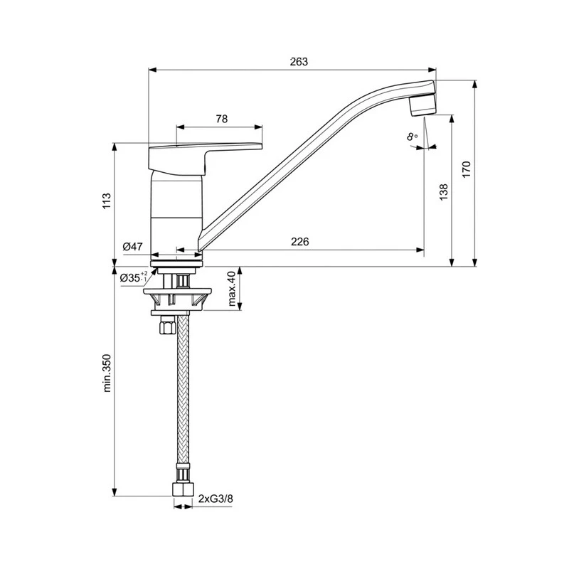 Hauteur sous aérateur 138 mm. Hauteur totale 170 mm. Projection 226 mm