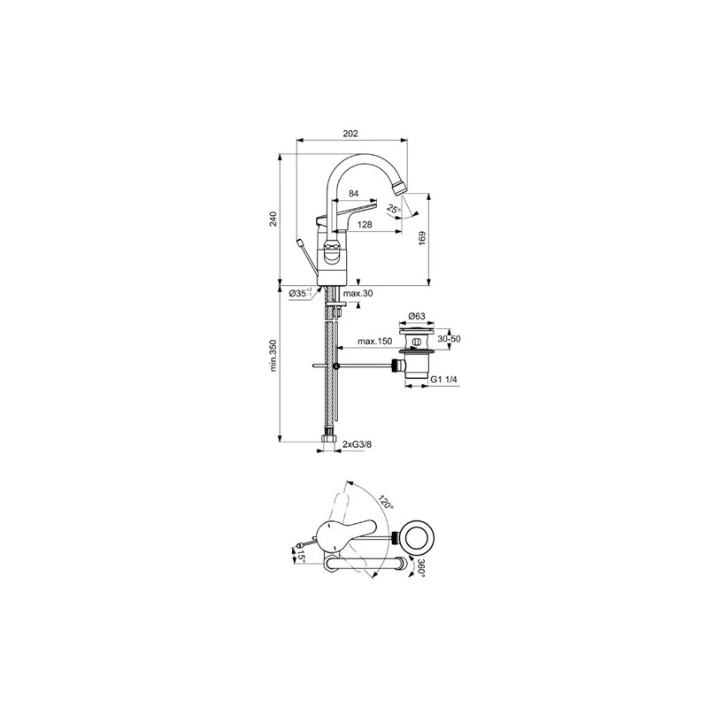 Hauteur sous aérateur 168 mm