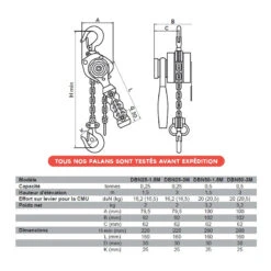 Palan à Levier Ultra Compact 0,25 Tonnes Levée 1,5m DBN25-1.5M
