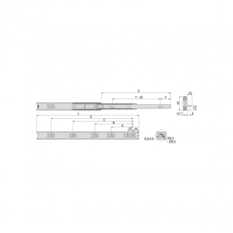 Coulisses à sortie totale pour tiroirs, dont les billes de haute qualité permettent un glissement doux et silencieux. Elles sont dôtées également une grande capacité de charge, pouvant supporter jusqu’à 30 kg par tiroir.