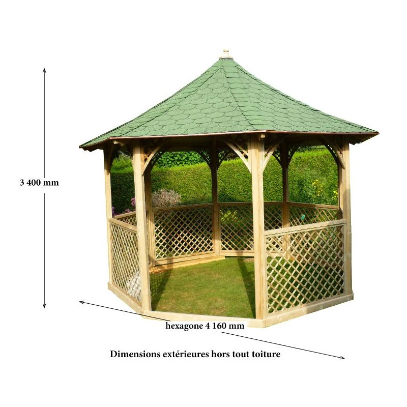 Pavillon octogonal 8 faces sans plancher fabriqué en pin traité autoclave