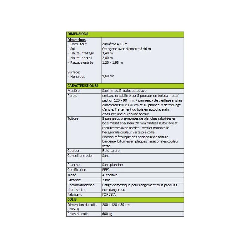 Les caractéristiques du Pavillon octogonal Habrita KIC35 :