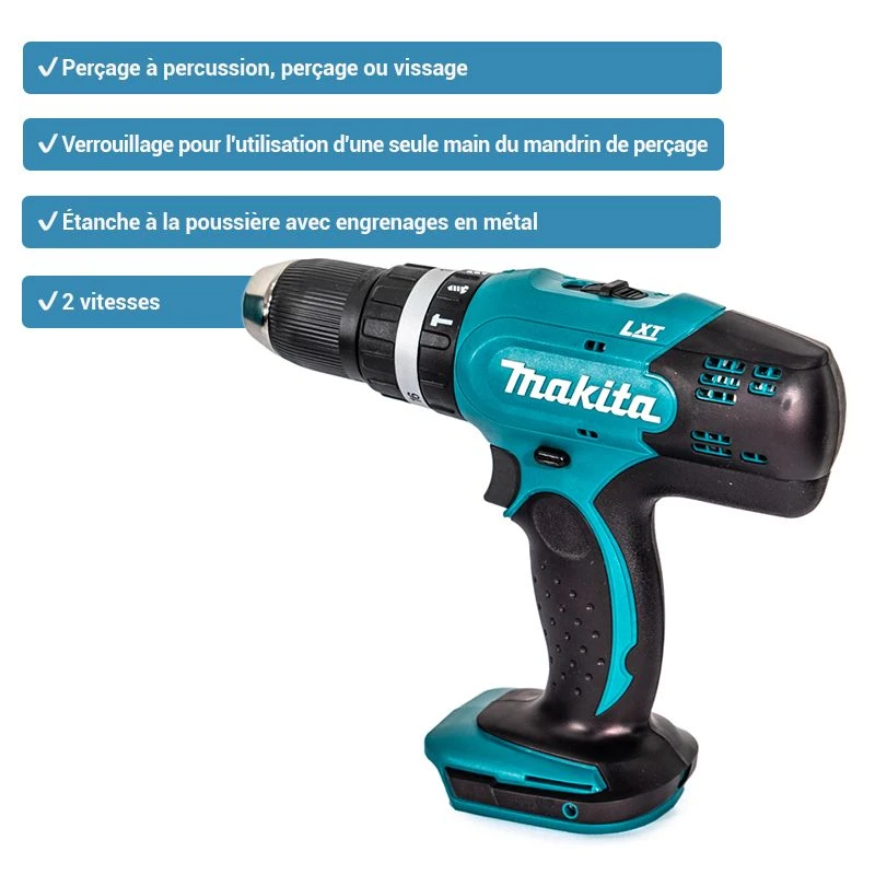 Les avantages de cette perceuse visseuse à percussion Makita DHP453ZX11 sont :