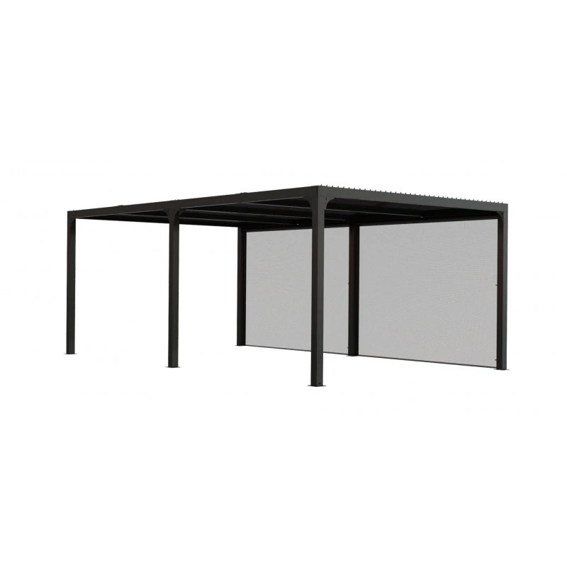 Afin d’optimiser votre confort, la pergola bioclimatique PER 3660R BI est équipée de 2 rideaux latéraux qui permettent de « fermer » un des côtés de 5,98 m.