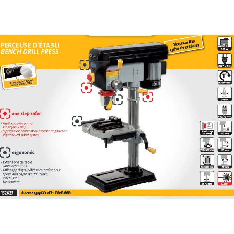 Peugeot – Perceuse d’établi 16 mm à affichage digitale 16 vitesses 550W- EnergyDrill
