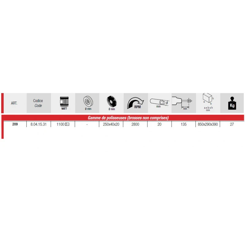 Femi – Polisseuse 1100W 400V Ø 250 mm sans brosses – 209