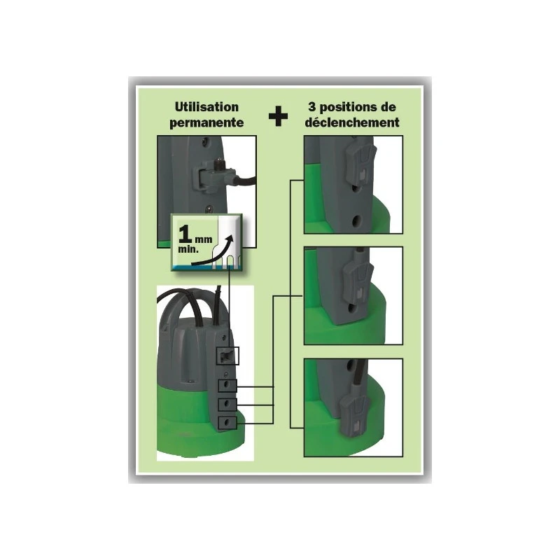 De plus, 3 positions de la sonde permettent de définir le déclenchement de la pompe.