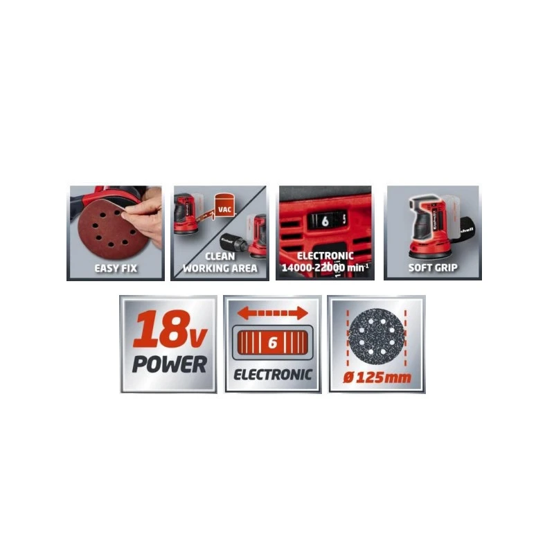 Einhell – Ponceuse rotative à batterie 18V 125 mm sans batterie ni chargeur – TE-RS 18 Li-Solo