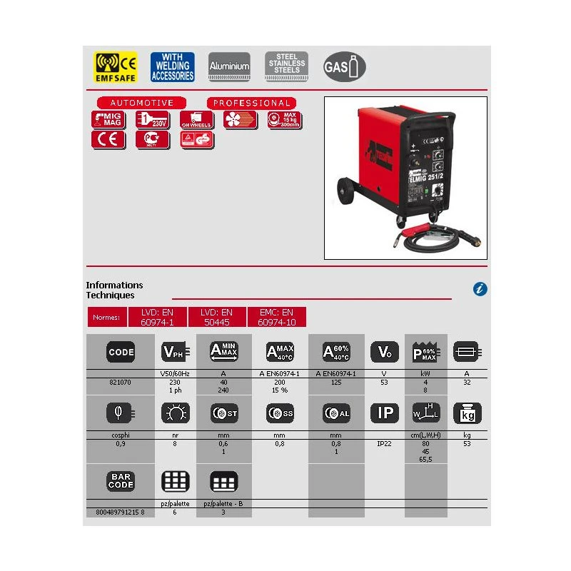 Telwin – Poste de soudage à fil MIG-MAG – TELMIG 251/2 TURBO