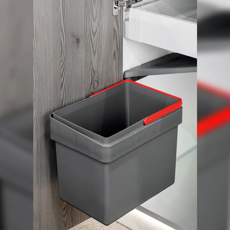 Poubelle de recyclage idéale pour installer sur les portes des meubles de la cuisine qui permet de séparer facilement les déchets et d’accéder rapidement au conteneur.