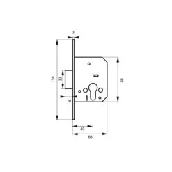 Boîtier Serrure à Encastrer à Cylindre PDT Seul, Axe 40 Mm 94514