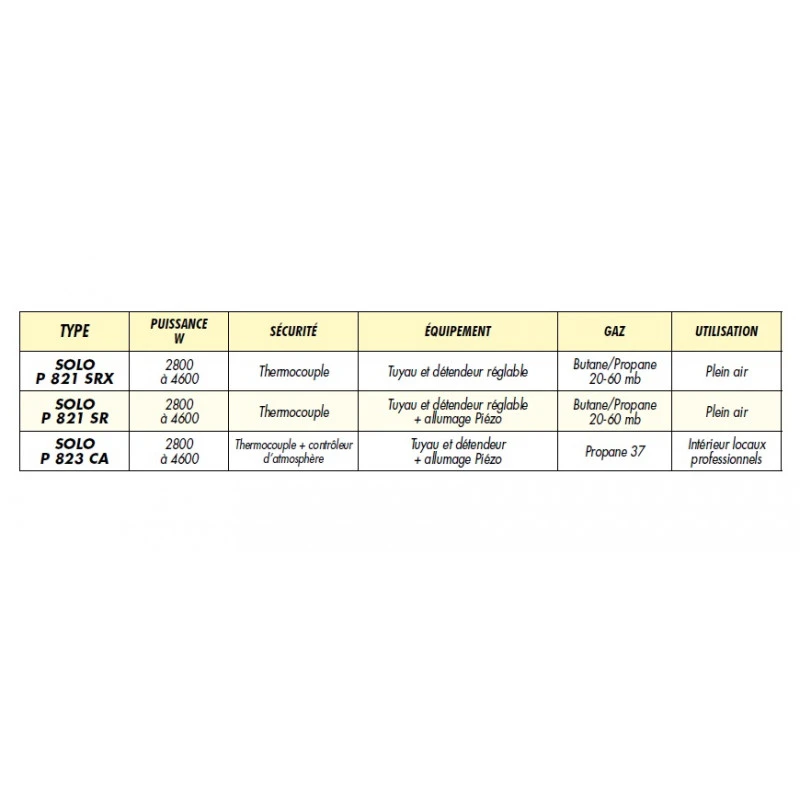 Les radiants gaz portables sur bouteilles SOLO sont étudiés pour les professionnels :