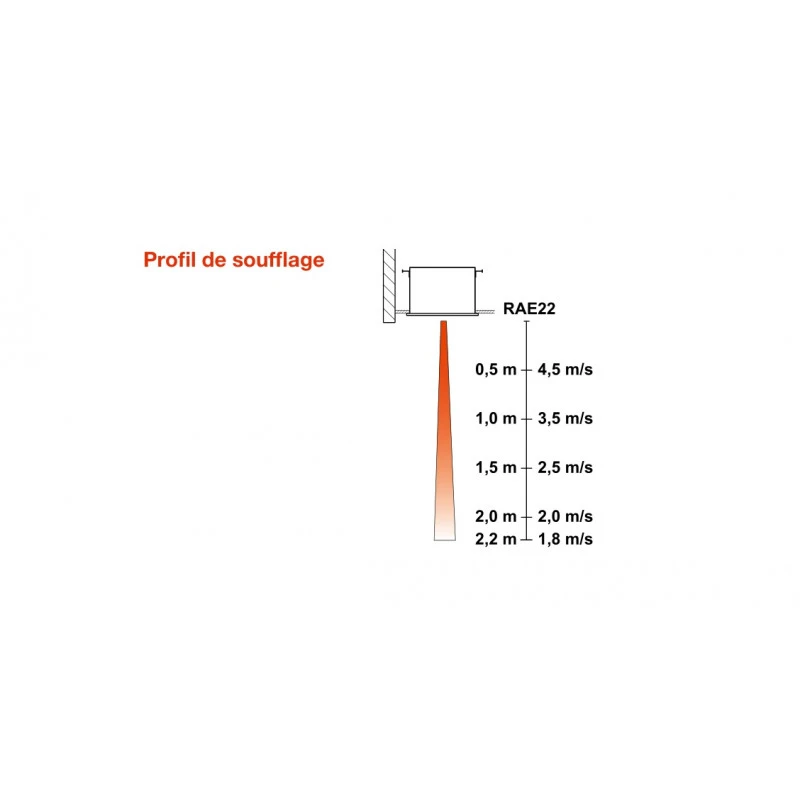 Rideau d’air encastré pour hauteur d’installation 2,2 m maxi.