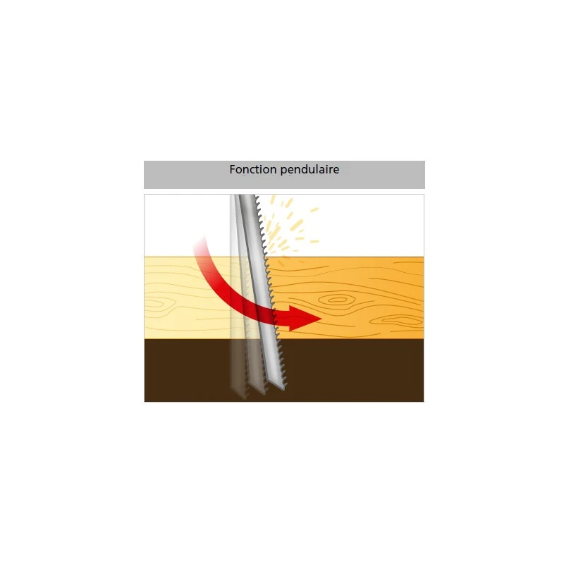 – Système pendulaire 3 positions pour un coupe plus rapide, une optimisation des coupes en courbe, un allongement de la durée de vie de la lame.