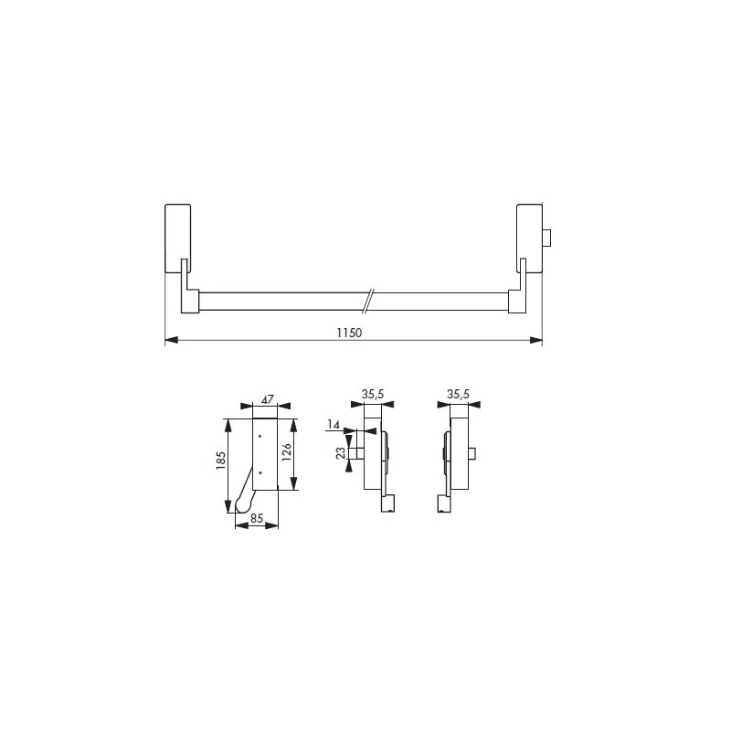 Thirard – Serrure anti-panique 1 point latéral réversible laqué gris porte maxi 1150 mm