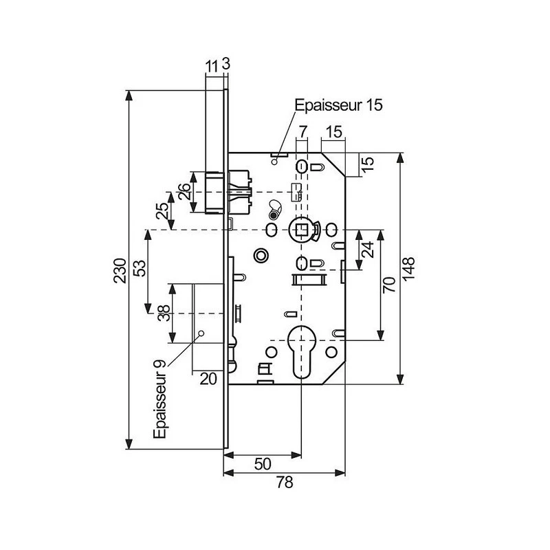 Vachette – Serrure de sûreté D455 Réversible sans gâche