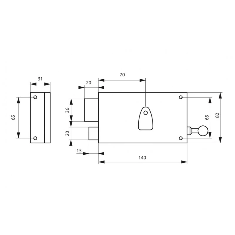 Pêne 1/2 tour réversible pour porte ouvrant à l’extérieur.