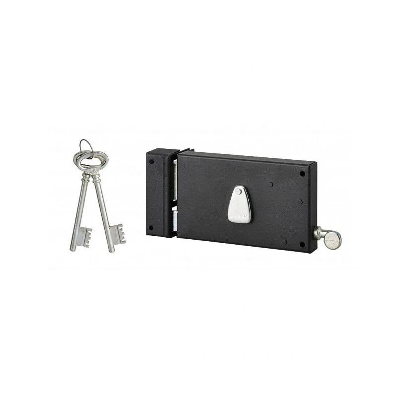 Coffre et gâche acier cambré.