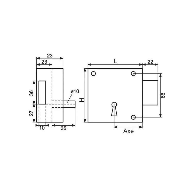 Dom Metalux – Serrure en applique standard 461 à pêne dormant seul Axe 65 mm droite