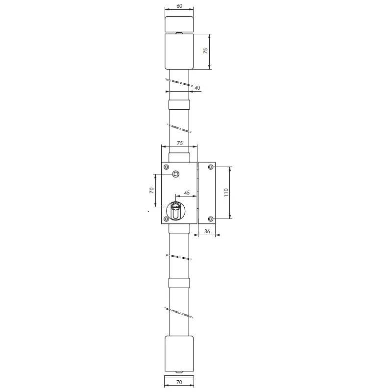 Tringles standard permettant une condamnation de porte de 1,65 m à 2,25 m.
