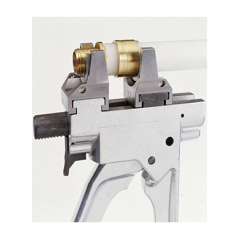 6 réducteurs et un adaptateur sont disponibles pour réaliser le sertissage des diamètres 12, 16, 20, 25 et 32 mm, sur les raccords : union, T, coude 90° et écrou prisonnier.