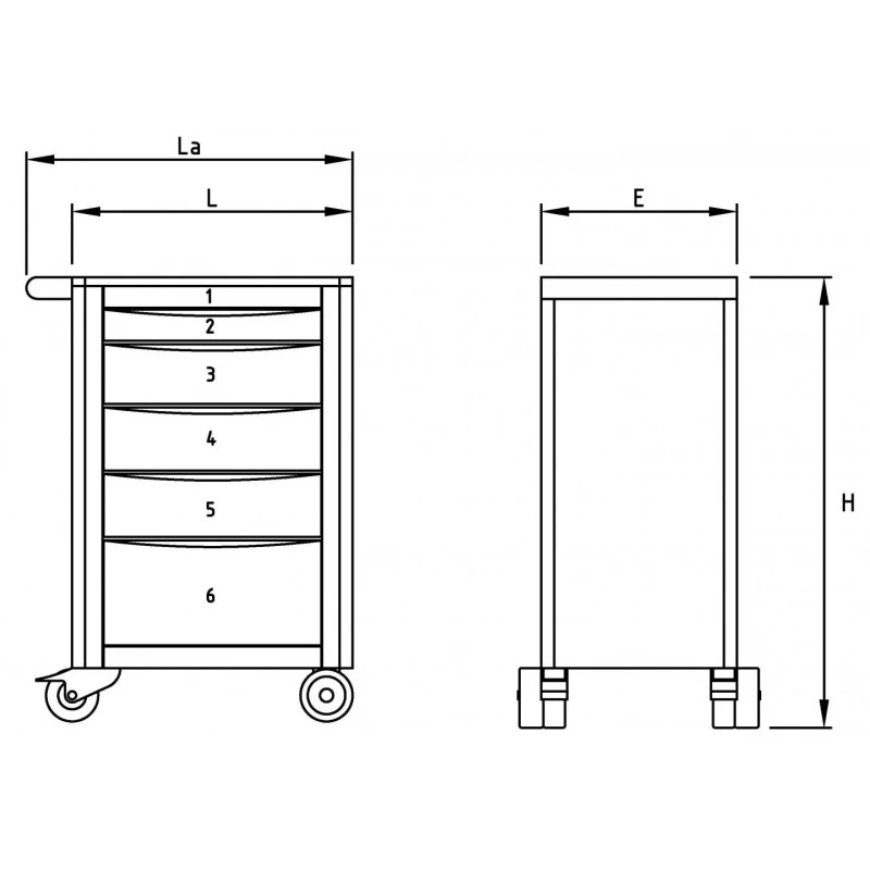 - Dim. tiroirs : 564×400 mm – 4 tiroirs H 60mm – 1 tiroir H 140mm – 1 tiroir H 225 mm.
