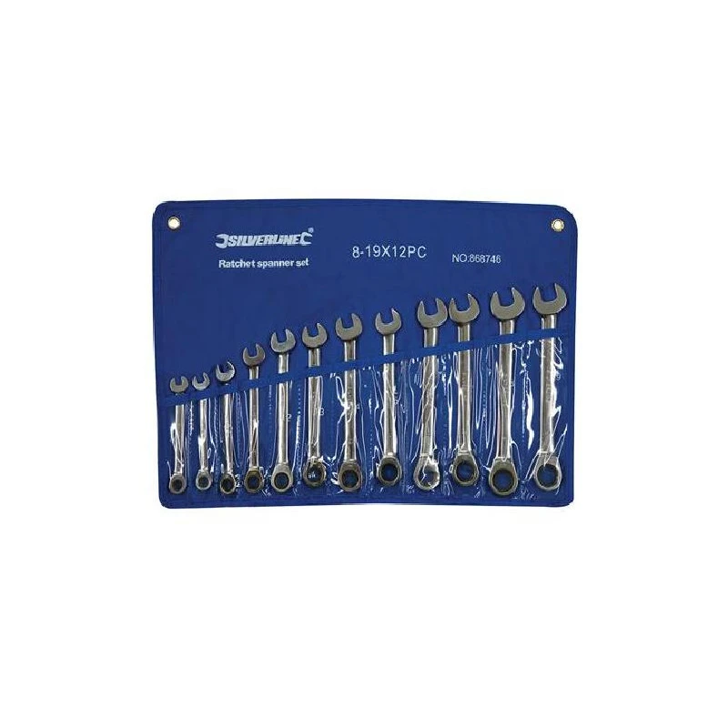 Silverline – Trousse de 12 clés mixtes à cliquet à tête droite 8 – 19 mm – 868746