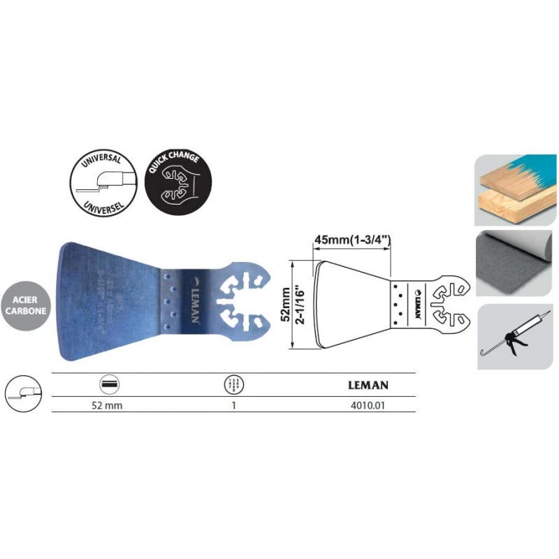 Leman – Spatule flexible acier carbone 52×45 mm SK7 – 4010.01