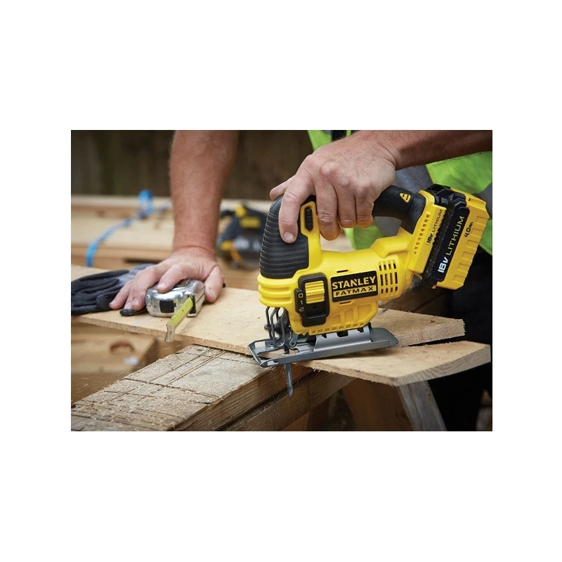 – Scie sauteuse dispose du système lithium ion de 18V, à combiner avec tout les outils électroportatifs sans fil 18V de STANLEY FatMax.