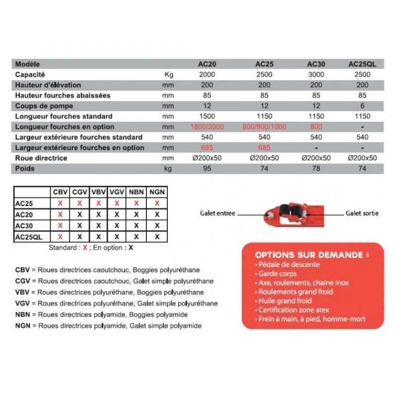 Caractéristiques techniques du transpalette Stockman AC251000 :