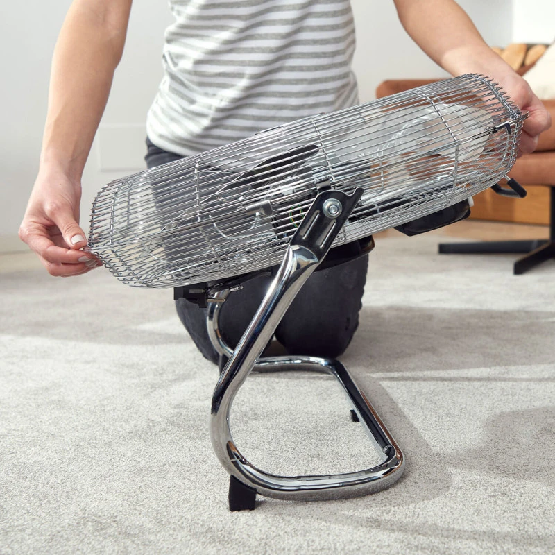 - Inclinaison adaptable : Vous pourrez incliner le ventilateur de sol en toute simplicité jusqu’à 120º. Vous avez seulement à diriger la grille et l’appareil se fixera dans la position choisie. Vous pouvez décider d’orienter l’air directement vers vous ou bien vers un mur ou vers le plafond pour le faire rebondir.