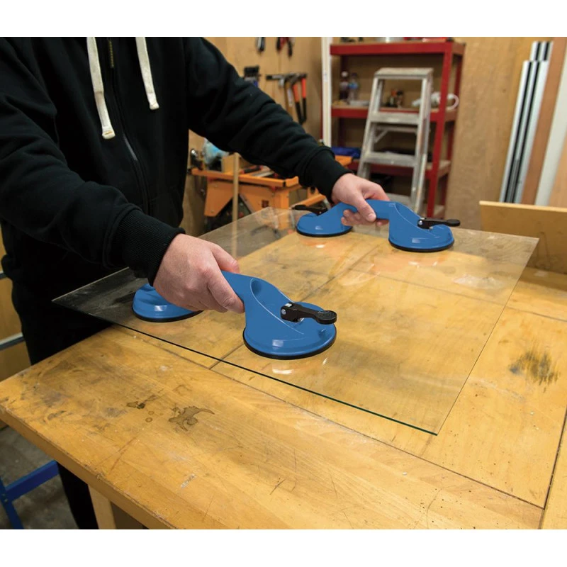 Ventouse double en plastique. Idéale pour le maniement d’articles difficiles et lourds tels que le verre et les panneaux. Taille 115 mm.